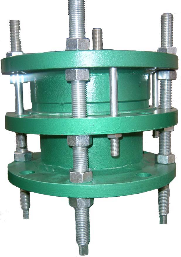 2、雙法蘭傳力接頭是由法蘭松套伸縮接頭和短管法蘭、傳力螺桿等構件組成。雙法蘭傳力接頭能降低被連接件的壓力推力(盲板力)和補償管路安裝誤差,雙法蘭傳力接頭不能吸收軸向位移。雙法蘭傳力接主要用于泵、閥門等附件的松套連接。